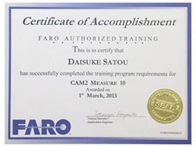 正確な精度を持った製品を作る為、弊社では常にFAROでの検証・測定を怠りません。